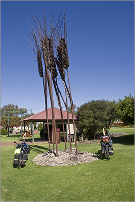 We had a late lunch at Cecil Newton Park in Mingenew near a giant wheat sheaf sculpture known by the locals as “Big Ears”. Mingenew is recognised as the largest inland grain receival point in the Southern Hemisphere. Wheat, lupins, canola barley and oats are all grown in the area.