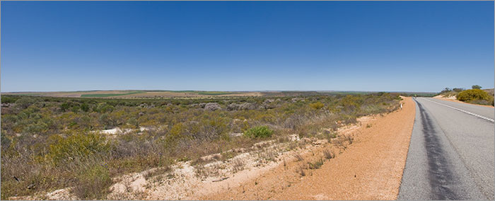 View looking over Depot Hill (flat hill right centre) towards Mingenew