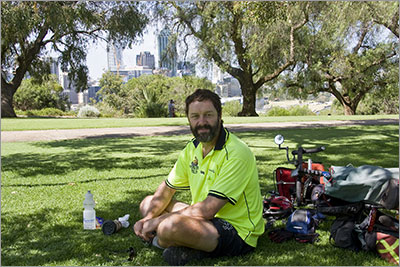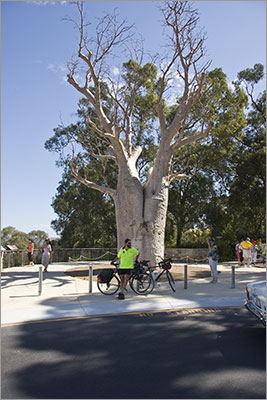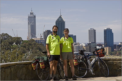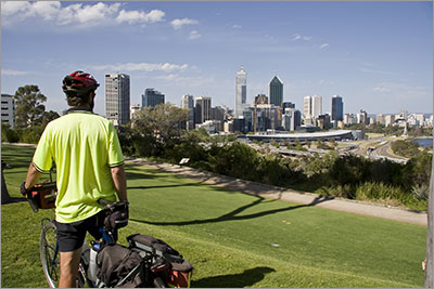 On Friday, 23 October, we rode into Perth along the Swan River and then up into Kings Park for a photo opportunity with the bikes and the Perth skyline in the background. On our way home we dropped into Bikewest at the Department of Planning and Infrastructure who were very helpful in providing us with information on how to get around Perth by bike. The Perth bike map series is a very detailed resource and after nearly two weeks of travelling around the city we now have some very used looking maps. Perth’s bicycle network is very clearly sign posted and based upon our experiences, Perth is by far the easiest capital to get around on bicycle. Our hometown Canberra is well known for its bicycle network but there is a lot that can be learnt from how Perth promotes and sign posts its network of shared paths, bike routes and on road cycleways.
