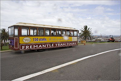 Fremantle Tram on Monument Hill over looking Fremantle, complete with rain drops on the camera lens. Denise stayed in the dry.