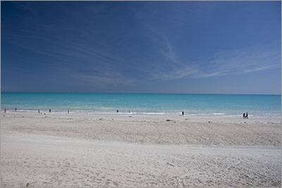 80 Mile Beach seems to attract a very different type of caravanner we had seen elsewhere. On either side of us there were people who had been there for three months or more and they were very comfortably established. One seemed to have every kitchen electrical appliance you could have from a food processor, bread maker, electric knife, ice maker, BBQ, numerous small fridges and freezers. It must take them days to set up and then pack. Each morning they all go out fishing for about four hours and then return for a very sociable afternoon with the neighbours. The place is quiet and still after 8.30pm.
