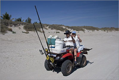 People use many different ways of getting their gear to their favourite spots, 4WD, trolleys, 8 wheel sand buggies and 4 wheeled bike