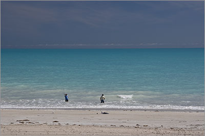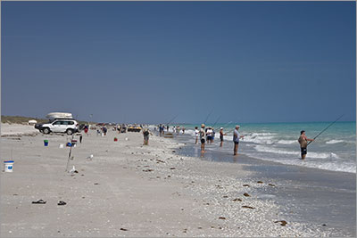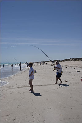 We had a very slow breakfast this morning before going for a walk along the beach. Other than the tranquillity, one other attraction for going to 80 Mile Beach is the beach fishing. (Swimming is not recommended due to the nasties, sharks and sea snakes).