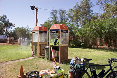 Before we left we rang the Big 4 at Port Hedland to book a shady site for three nights as we had been told it was hard to get in if you just turned up. Last night we had mobile phone coverage but this morning in the high wind we had none at all. So we decided to use a phone box – did you know that phone boxes do not use money any more, you have to buy and use a phone card!