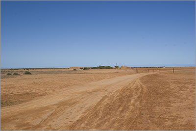 Yards and turkey nest dam and no ground cover within a couple of kms